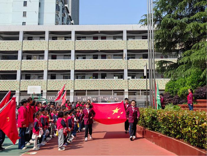 课后,升旗的入场音乐响起,哥哥姐姐们护卫着鲜艳的五星红旗,步履坚定。伴随着一声“升旗,少先队员敬礼,其他同学行注目礼。”鲜艳的五星红旗徐徐升起,敬礼动作整齐划一,胸前的红领巾自在飘扬,小朋友们切身的感受到了小学升旗仪式的庄严肃穆。与哥哥姐姐们共唱国歌,小朋友们的声音一样响亮有力,站姿一样昂首挺胸,俨然已是一副小学生的模样。