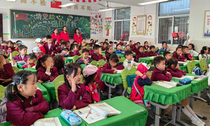 在乐农新村小学老师的带领下,小朋友们轻轻走进哥哥姐姐们的教室,和哥哥姐姐们一样端坐着,认真的听讲,积极的举手回答问题,体验着小学课堂的魅力。