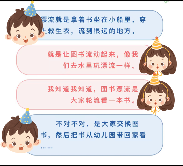 漂流阅读的图书从哪来?班级的图书角、家庭图书都是宝藏资源库,老师带领幼儿精心挑选自己喜欢的图书、绘本,充分利用家长资源分享家庭中的图书,实现共阅共享。