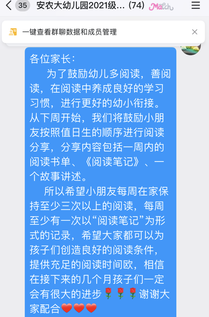 在快一个月的时光里,孩子们的进步有目共睹,每周的分享也慢慢变成了孩子的作息习惯。对于即将进入小学的孩子们来说,阅读也正是他们需慢慢养成的好习惯!