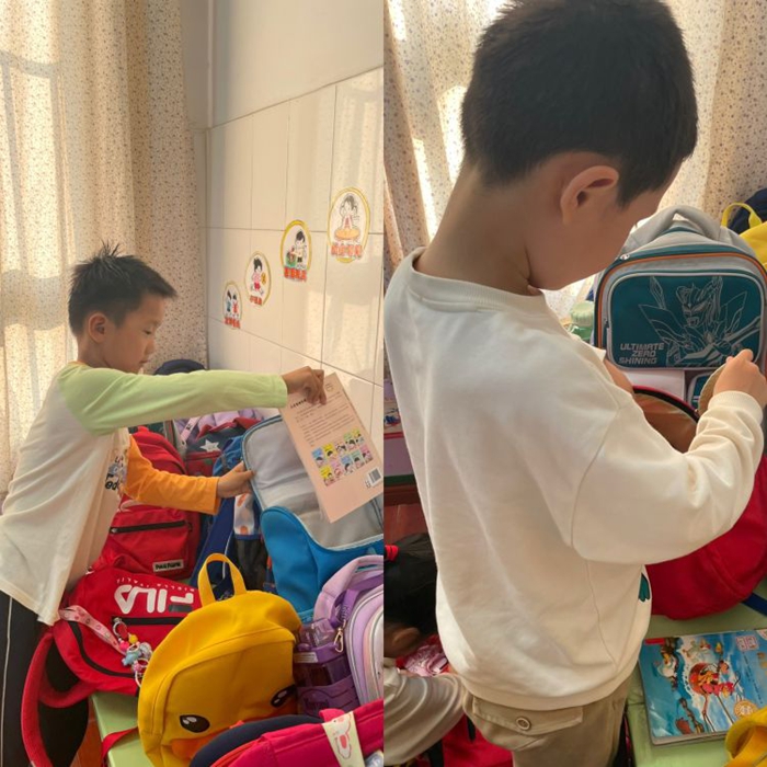 第三步,将挑选的书放进书包带回家啦~小朋友们一定要爱惜它哦!