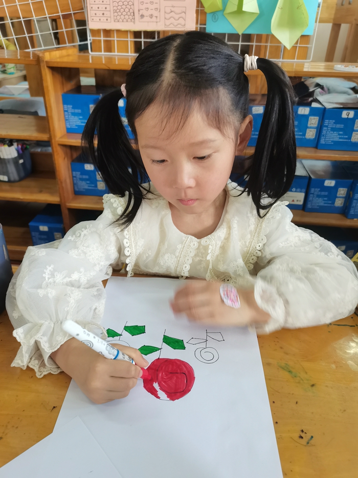 最后,哥哥姐姐们带领孩子们画了也门最著名的玫瑰花,孩子们笔下的玫瑰形态优美,十分夺目,收获了喜悦。