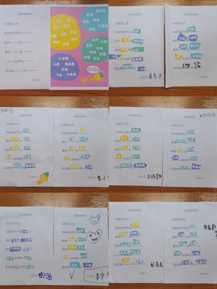 课程结束后,小朋友们在袁老师的指导下开始创作一首写给妈妈的诗,做为母亲节的礼物送给妈妈。