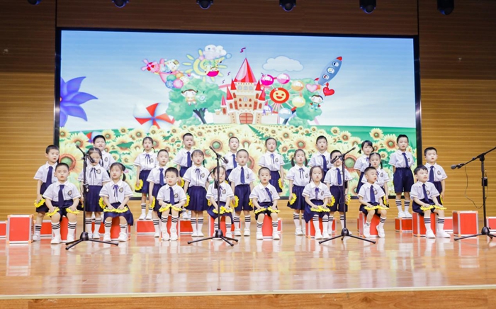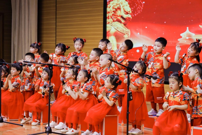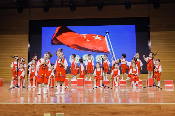 舞动着勇气的旋律,中一班的一首《虫儿飞》带我们回到无忧无语的纯真童年。一曲《红红的太阳》吟唱着无限的爱国情,共同祝愿祖国繁荣昌盛。