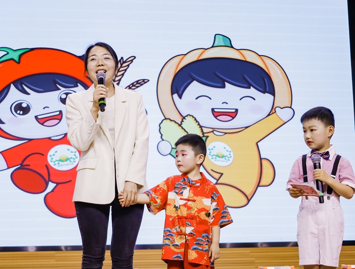 在幼儿园吉祥物名字征集活动中,小二班缪言知小朋友和爸爸妈妈取的名字最终被选用。缪言知妈妈向大家介绍了“红果果”和“金豆豆”名字的由来和意义,尹园长为他们颁奖。