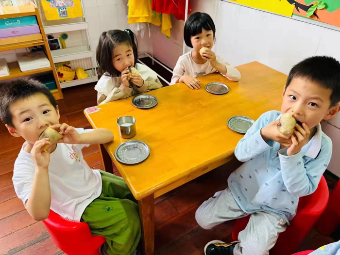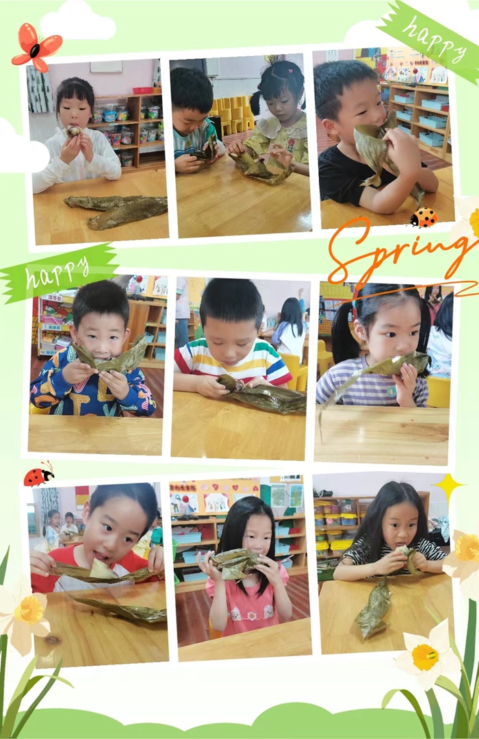 幼儿园也为孩子们准备了美味的粽子,小朋友们都吃的津津有味。