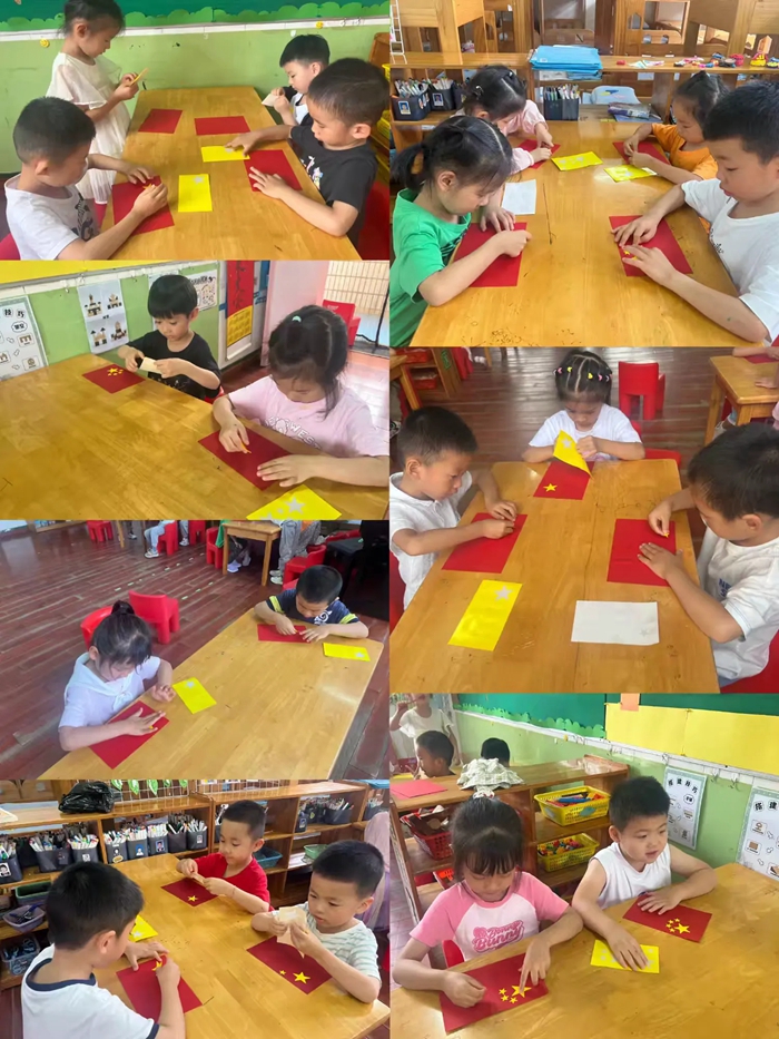 最后,张艾平爸爸还给小朋友们介绍了党的光辉历程。带领小朋友们认识了中国共产党的党旗、1921年中国共产党的诞生,以及伟大的革命先烈英雄。并告诉小朋友们要树立热爱祖国的意识,热爱集体、热爱家乡、遵守纪律、强健体魄,从身边一点一滴的小事做起。小朋友们共同制作了五星红旗,大家都非常认真的粘贴制作,自己动手做的国旗真是太有意义了!