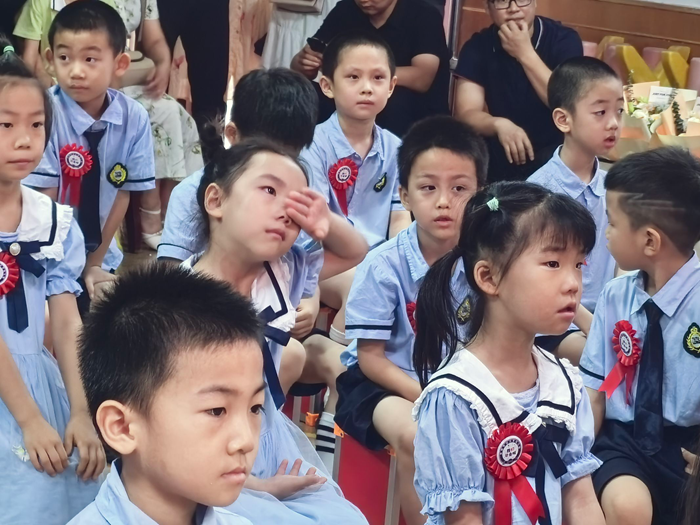 老师代表把对孩子们的不舍与祝福化成一句句殷切的期望,祝愿每一位孩子都能健康快乐地成长,老师和孩子们都红了眼睛。