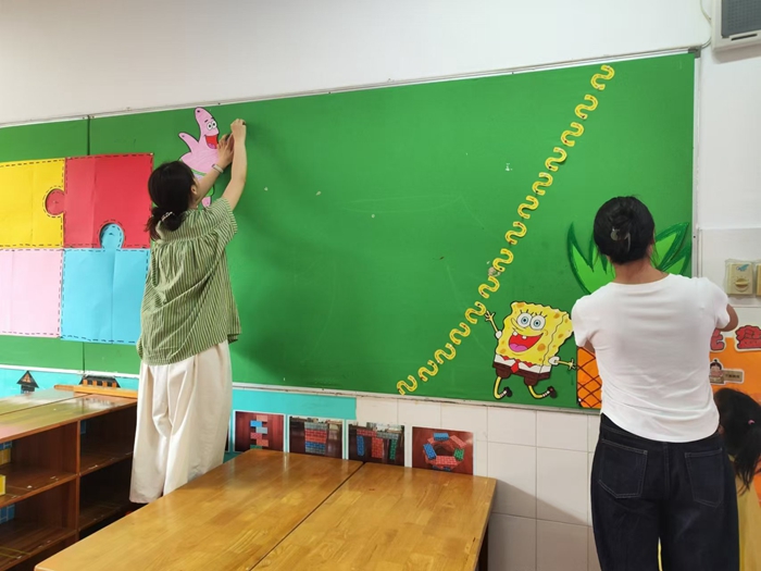 为了充分发挥环境育人的作用,为幼儿创设舒适的生活学习环境,老师们针对班级情况,也在同步进行新学期的环境创设工作。