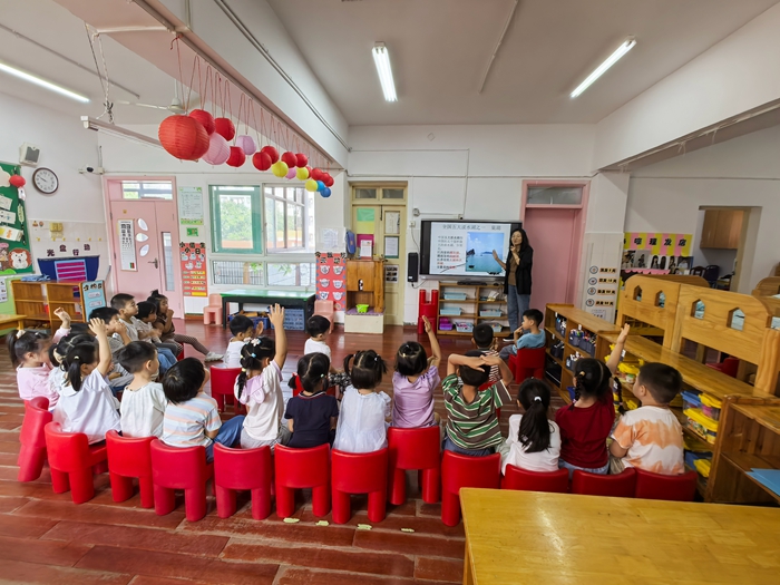 小朋友们积极举手发言,听得非常认真。