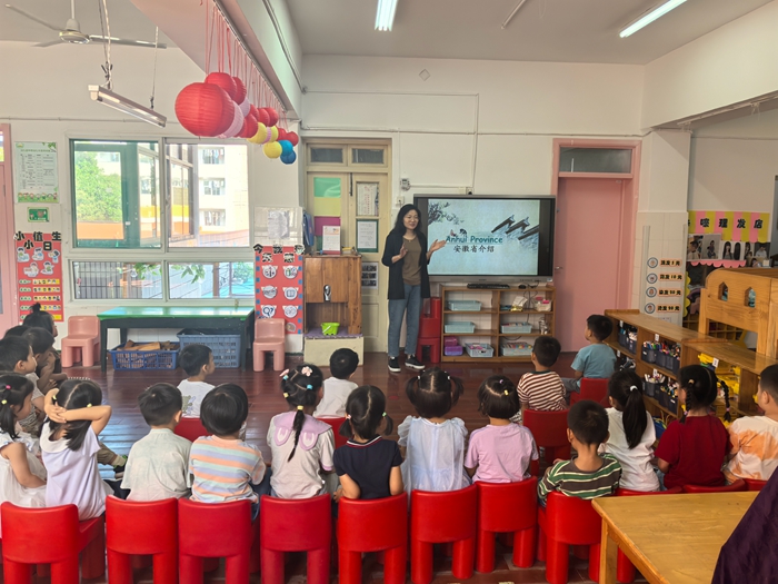 9月29日上午,中二班曹亦玺妈妈来到幼儿园,开展了“家长进课堂”活动,给小朋友们介绍了我们的家乡——安徽。