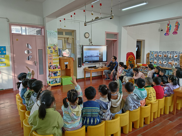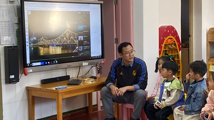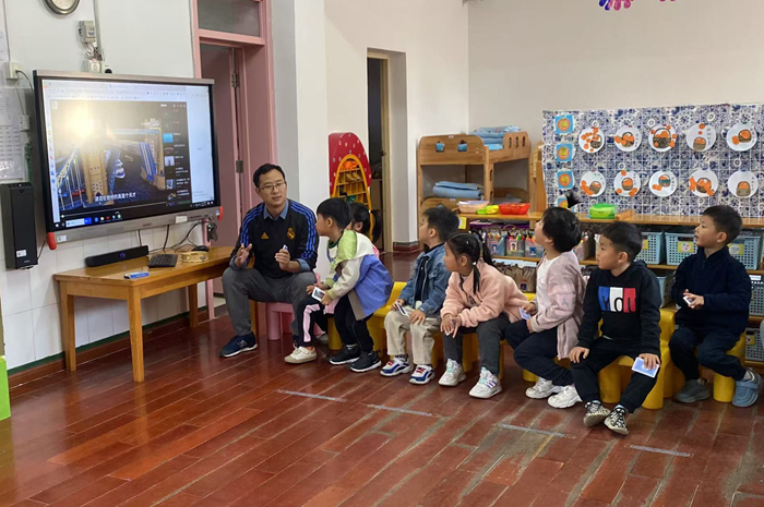 何老师用生动的语言和小朋友们讲解桥梁的种类、构造等知识,让小朋友们对桥梁有了更直观的认识。小朋友们听得全神贯注,时不时还提出自己的小疑问,何老师都耐心地一一解答。