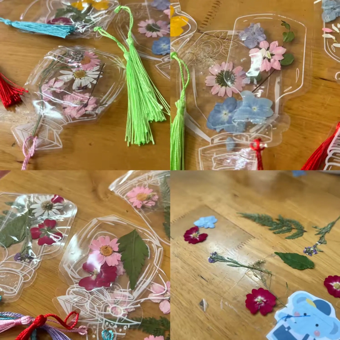 最令孩子们期待的部分,无疑是亲手制作植物标本书签的环节。大学生们提前准备好了各种干花、树叶和透明片,指导小朋友们将喜欢的植物材料粘贴在书签上。孩子们充分发挥自己的创造力,用小巧的手将一片片植物碎片组合成独一无二的艺术品。不一会儿,一个个充满童趣的植物标本书签便诞生了。看着自己精心制作的作品,每个孩子的脸上都洋溢着成就感和喜悦。