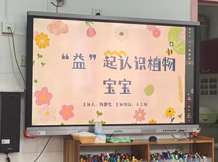 姐姐们通过色彩鲜艳的图片和形象生动的语言,带领孩子们认识常见植物。